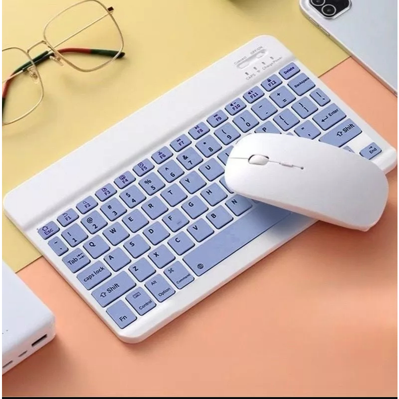 Kit Teclado e Mouse Sem Fio Bluetooth Colorido Macaron Para PC iPad Tablet Notebook