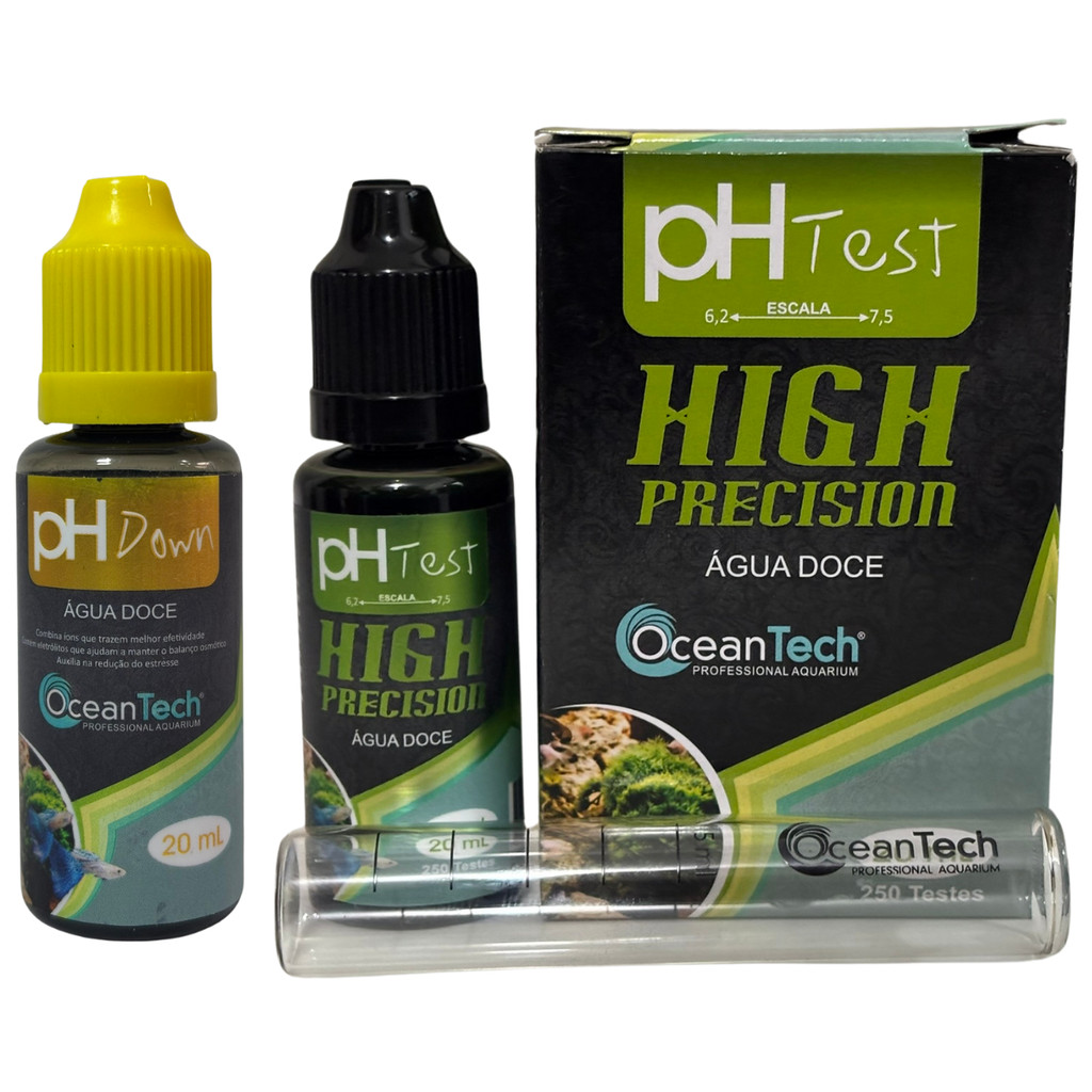 Kit Teste pH Água Doce + Acidificador Tamponador pH OceanTech Diminuidor de pH Aquário + Teste pH