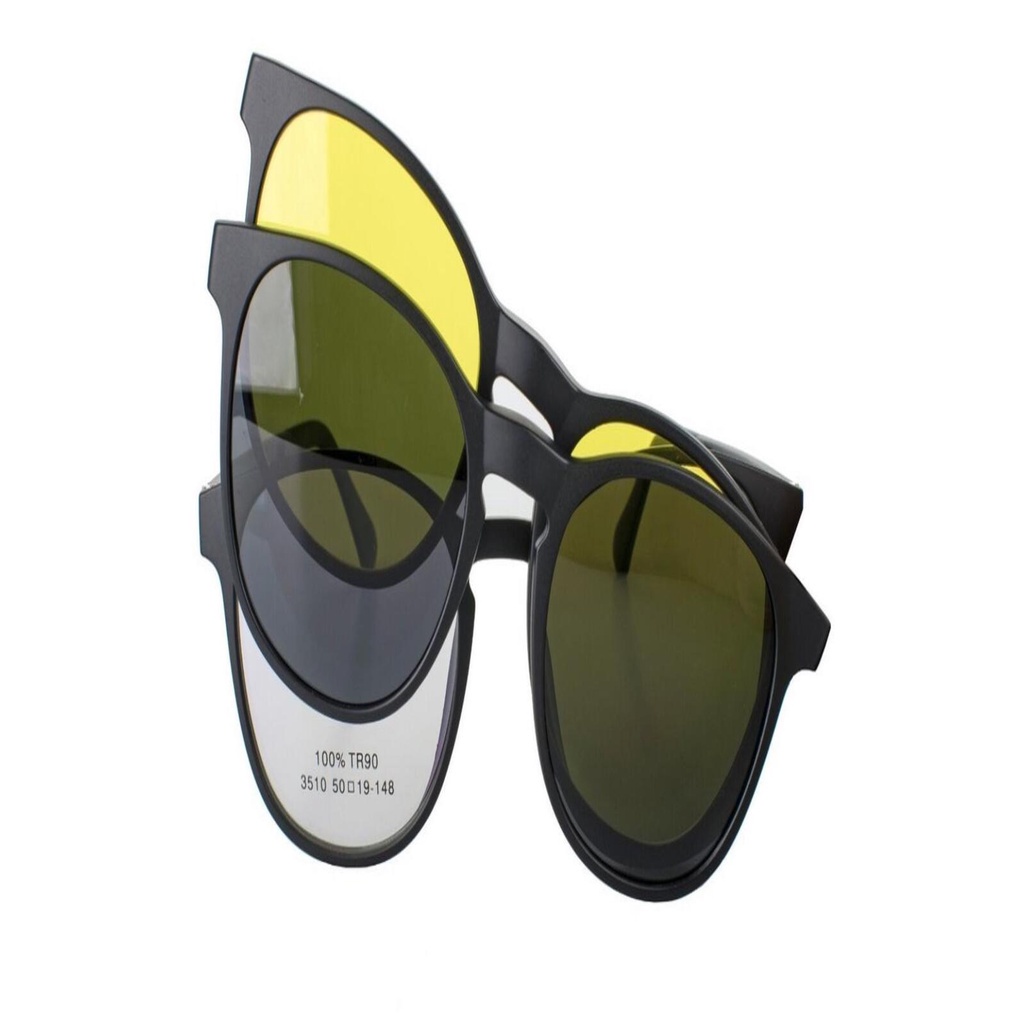 Armação Oculos De Grau Clip On 6 em 1 Oculos de Sol Masculino Polarizado Preto Quadrado Troca Lentes Espelhadas Mod 2202