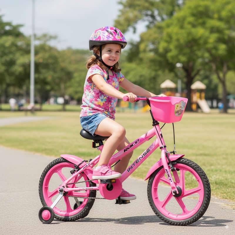 Bicicleta infantil Aro 16 V-brake Meninas com rodinha Colorida quadro Aço Carbono Intense Kids Cor Pink