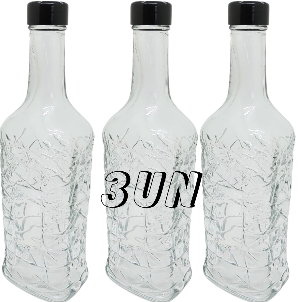 Kit 3un Garrafa Vidro Grande Transparente De Agua 1Litro com Tampa Plástico Rosqueável Preta Boca Larga Texturizada, Jarra Frasco Porta de Geladeira Quadrada suco Leite liquido Presente Louça Decoração Venda em atacado