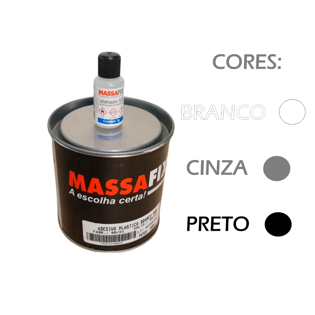 Massa Corretivo Automotivo e Uso Geral Adesivo Plástico Branco Cinza ou Preto 1Kg com Catalisador Massafix
