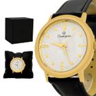 Relogio Feminino Champion Analogico Aço Inoxidavel Dourado Mostrador Branco Pulseira Couro Original Resistente a Agua 1 Ano de Garantia CN20962B