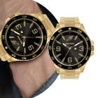 Relógio Masculino Dourado e Preto Analógico com Caixa e Pulseira em Aço Inoxidável Redondo Grande Luxo Elegante Social- MO2015AD/4D Mormaii Original