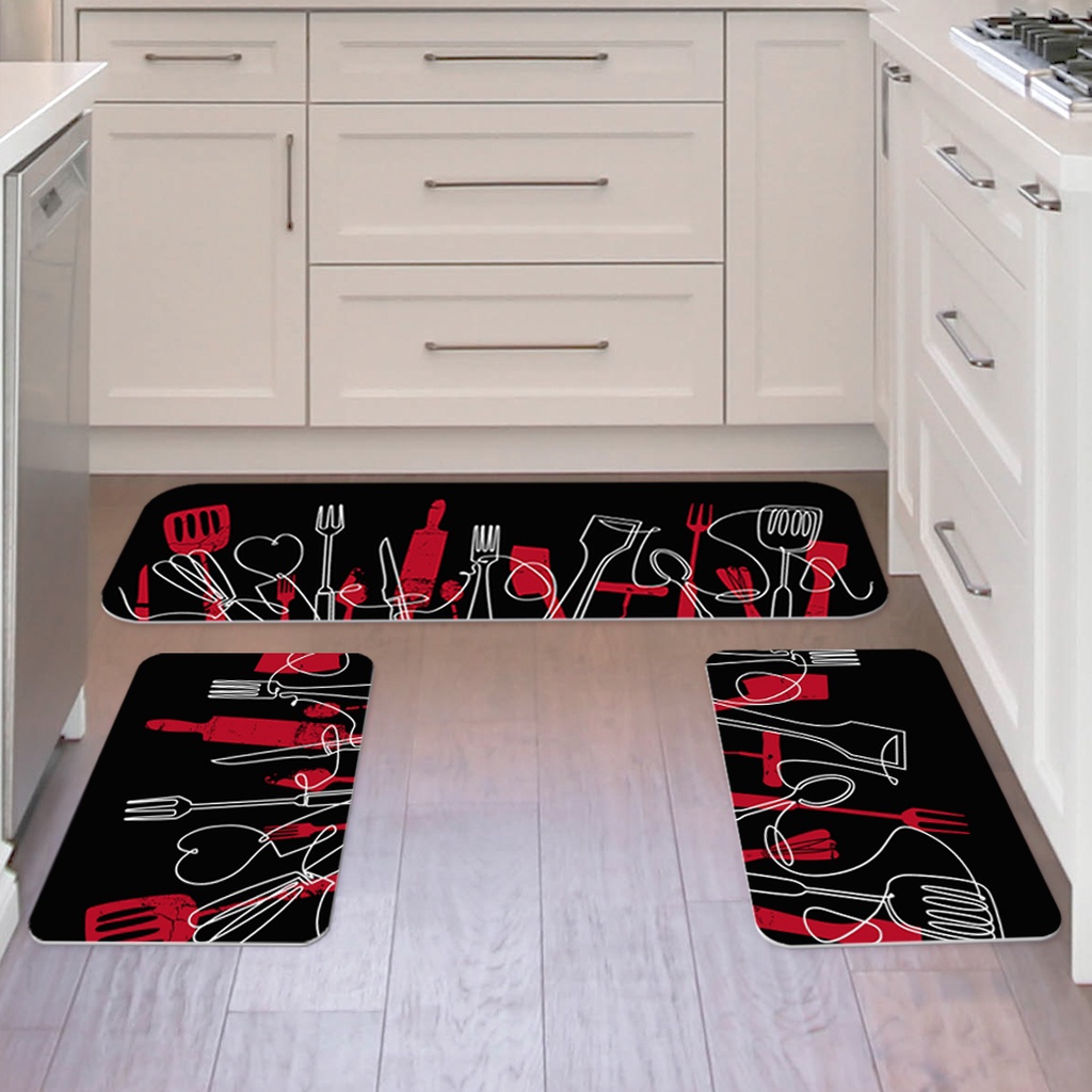 Kit Jogo 3 Peças de Tapete para Cozinha Talheres Antiderrapante Dcorô.