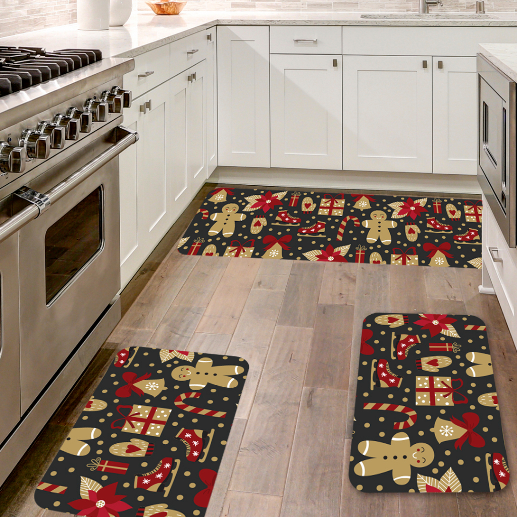 Kit Jogo 3 Peças de Tapete para Cozinha NATAL Docinho Biscoito Antiderrapante Dcorô
