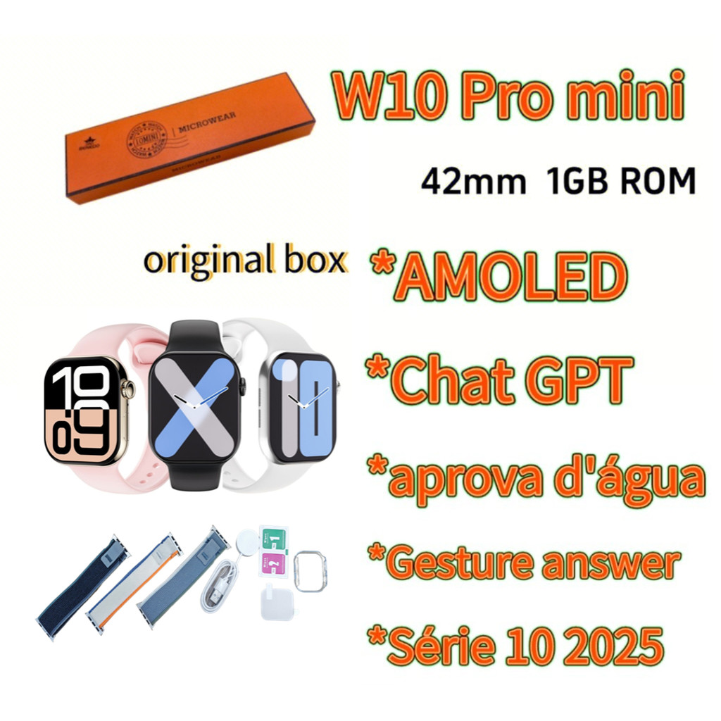 Smartwatch W10 Pro Mini Amoled IP68 aprova D'água 42mm Series 10 2025 Gps Nfc esportes