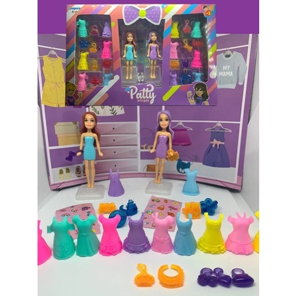 Boneca patty troca de roupa com diversas roupas duas bonecas