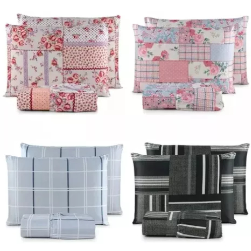 Kit 4 Jogos de Lençol Casal Estampado 3 Peças com Elástico Cores Variadas