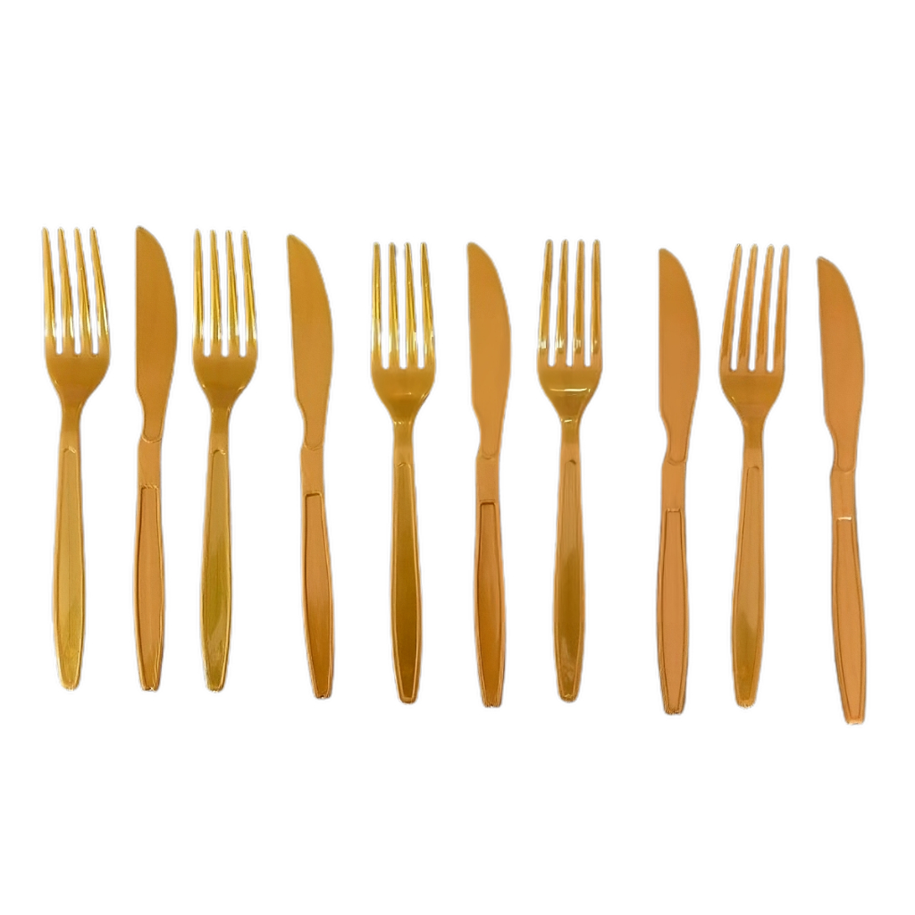 Kit 100 Talher Garfo E Faca Descartável Refeição Reforçada Dourado