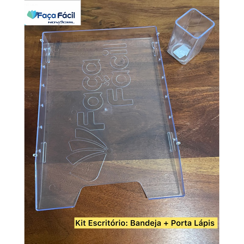 Kit para Escritório Porta Caneta Porta Lápis e Bandeja Organizadora de Correspondência Acrílica Acrílico Novacril Faça Fácil