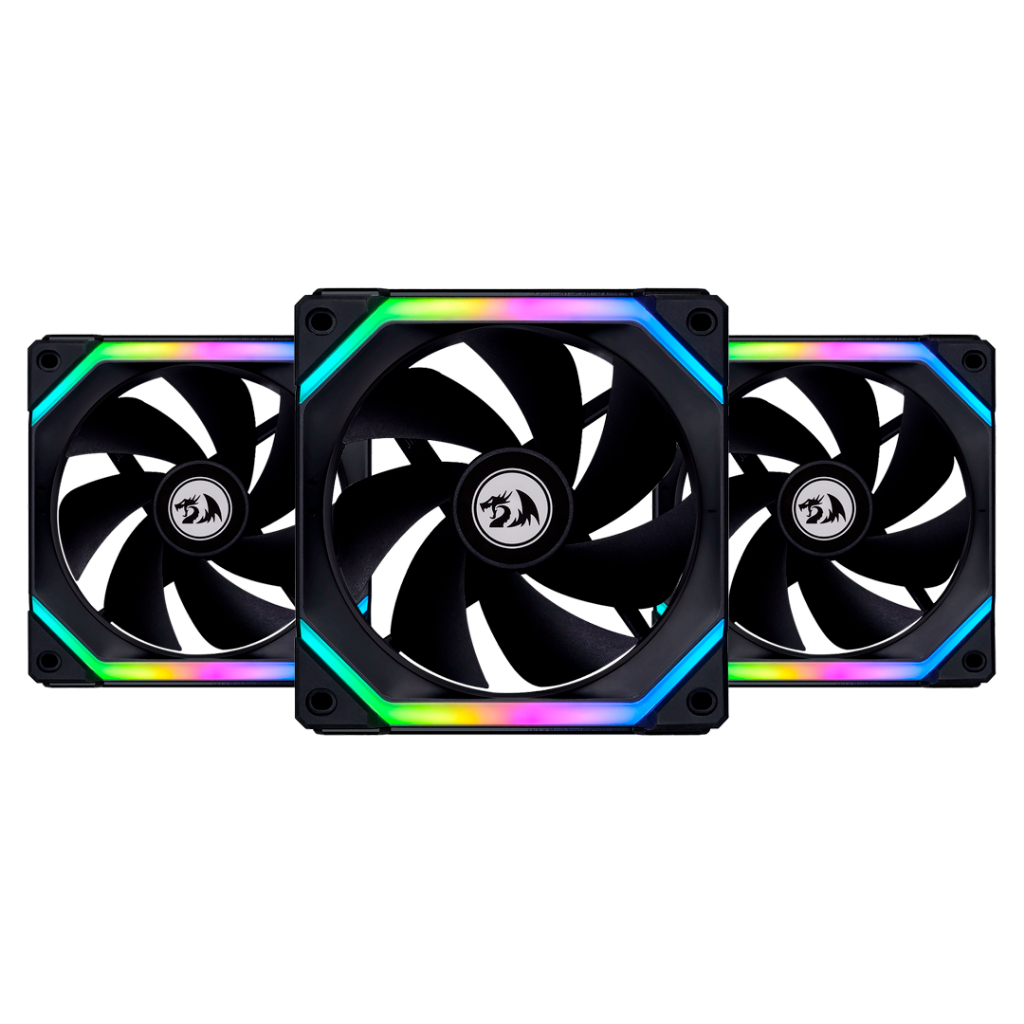 Kit Com 3 Cooler Fan Redragon By Lian Li, 120mm, RGB, Com Controladora, Preto - UF-SL120-3B SI