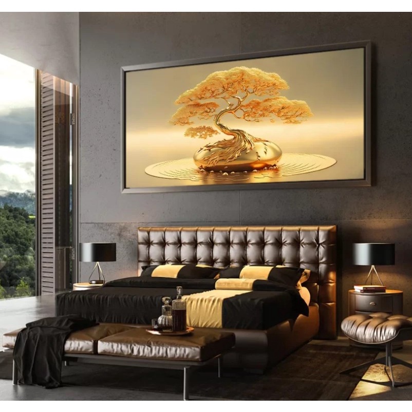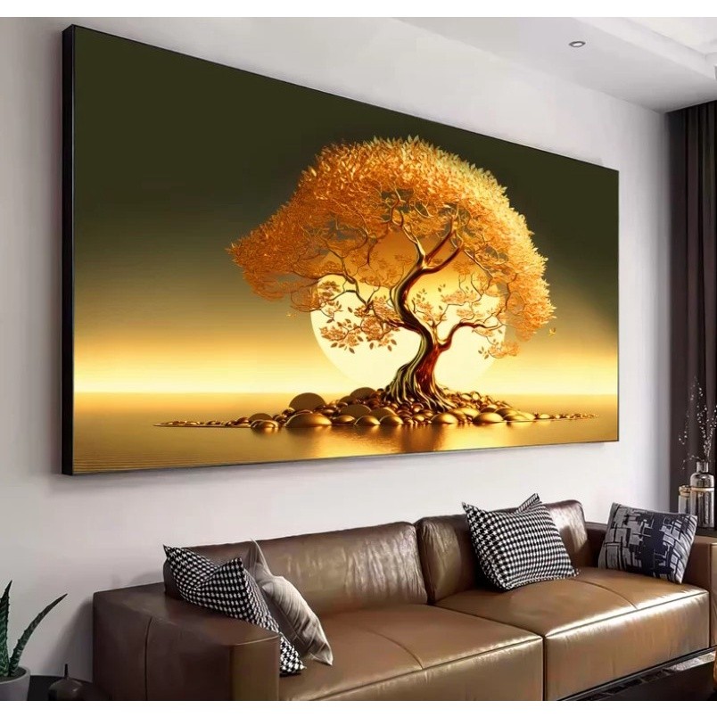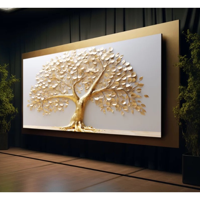 QUADRO DECORATIVO 110X80CM ÁRVORE DA VIDA GOLD HALL LUXO CASA SALA QUARTO DECORAÇÃO DE PAREDE GRANDE