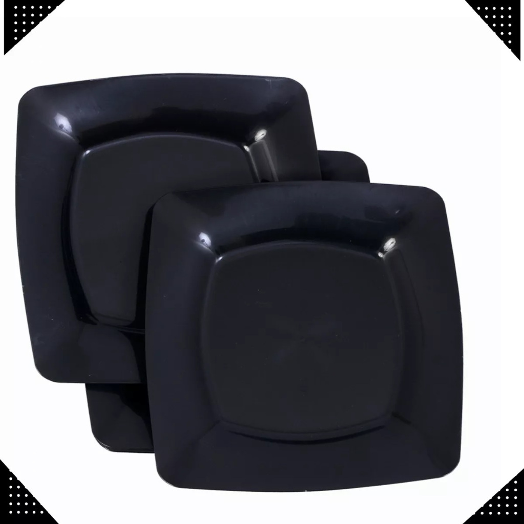 Kit 50 Pratos Quadrados Plastico Preto resistentes bonitos perfeitos para churrascos refeições festas aniversários Confraternização Reveillon Natal ano novo Ceia fácil de lavar