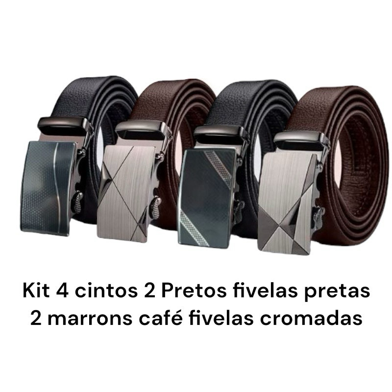 kit 4 cinto social 2 pretos e 2 marrons café de fivelas pretas e fivelas pratas
