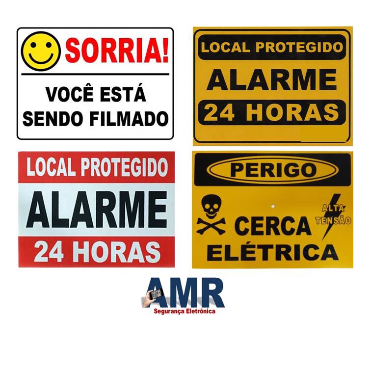 Placa de Advertência Sorria Você Está Sendo Filmado, alarme 24 horas, cerca elétrica placa de aviso sinalização monitoramento