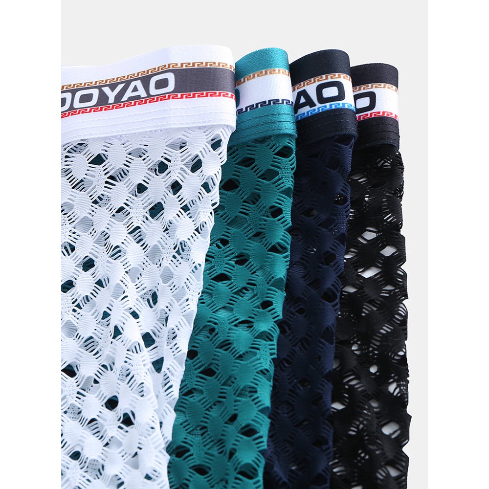 Cueca Boxer Sexy Masculina Malha Transparente Cor Sólida e Fina e Respirável Newchic