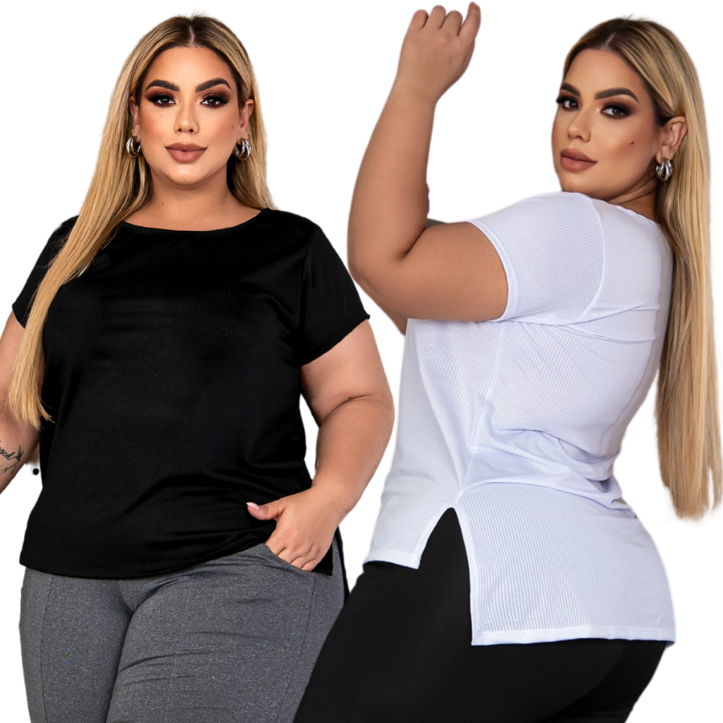 Blusa Dry Fit Plus Size Feminina Roupa de Academia Tapa Bumbum Para Treino Kit com 3 Blusinhas Curve