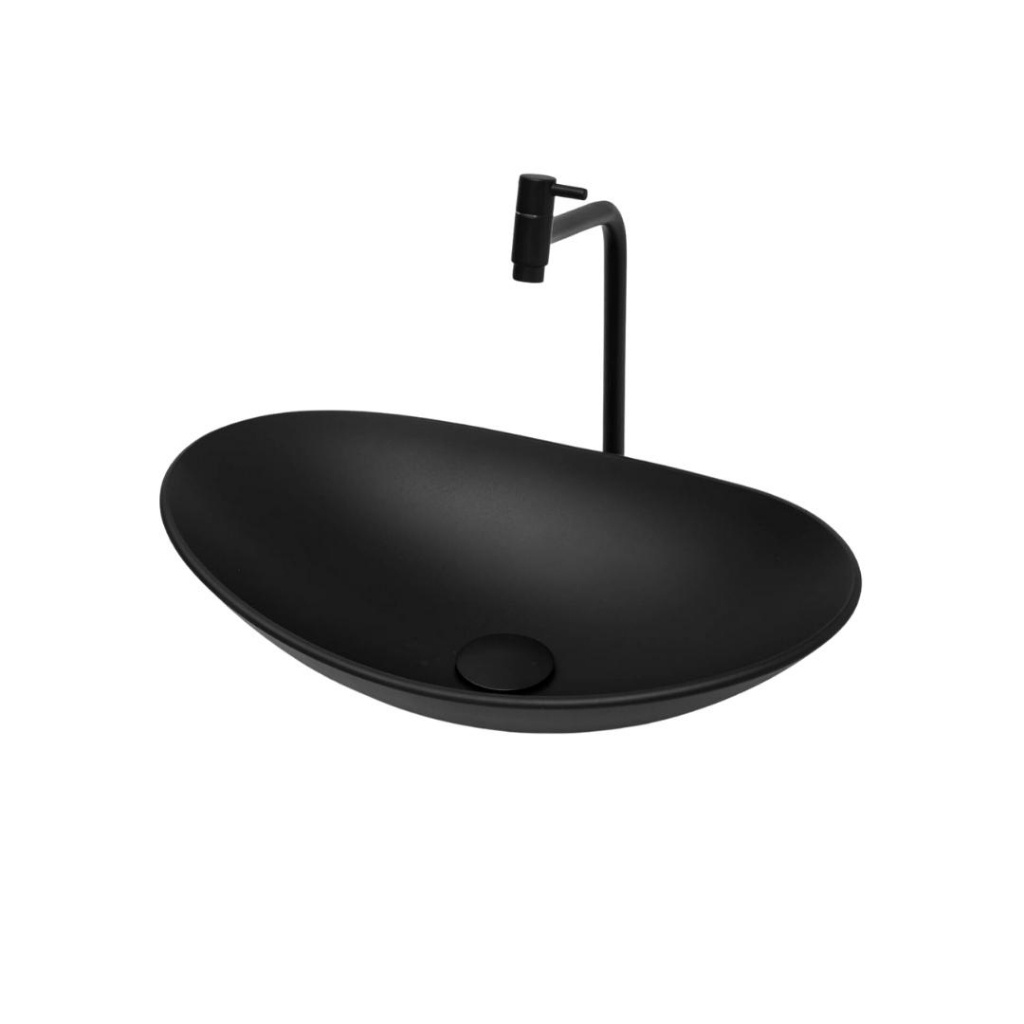 KIT CUBA P/ BANHEIRO OVAL COM TORNEIRA ALTA + VALVULA CLICK UP INTELIGENTE - PRETO FOSCO LUXO