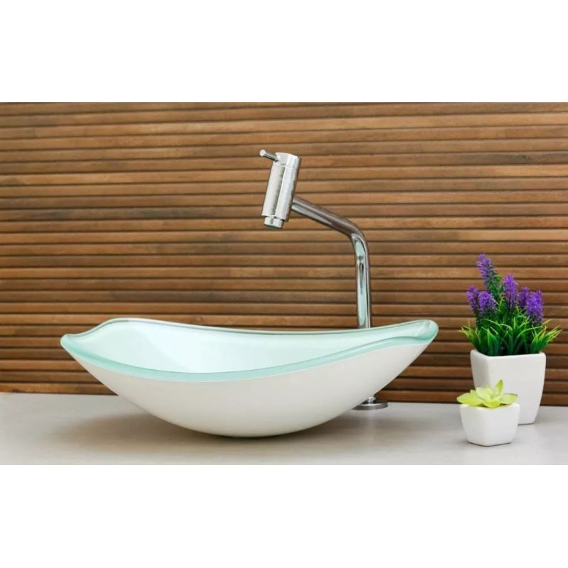 Kit cuba de vidro oval para banheiro e lavabo com torneira link cromada + válvula click