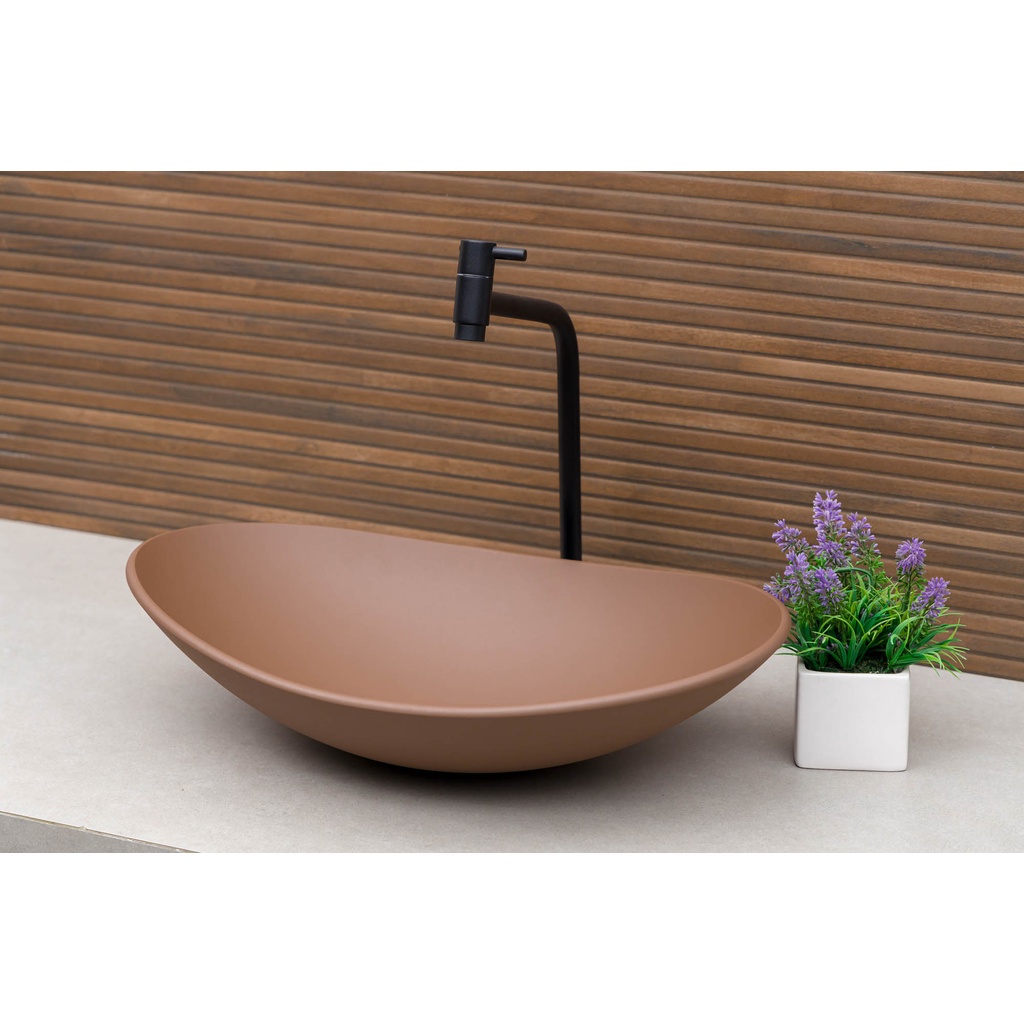 Kit para Banheiro Lavabo com Cuba/Pia Apoio + Torneira Link + Valvula Click Up inteligente - Marrom Fosco