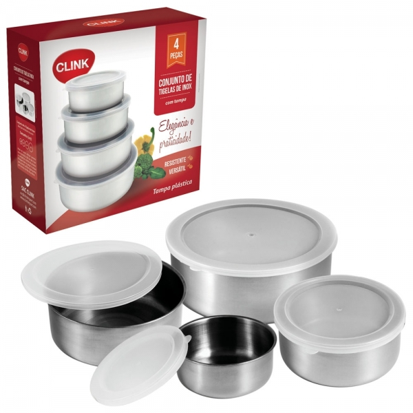 Conjunto de Tigelas Potes De Inox 4 Peças Redonda Com Tampa