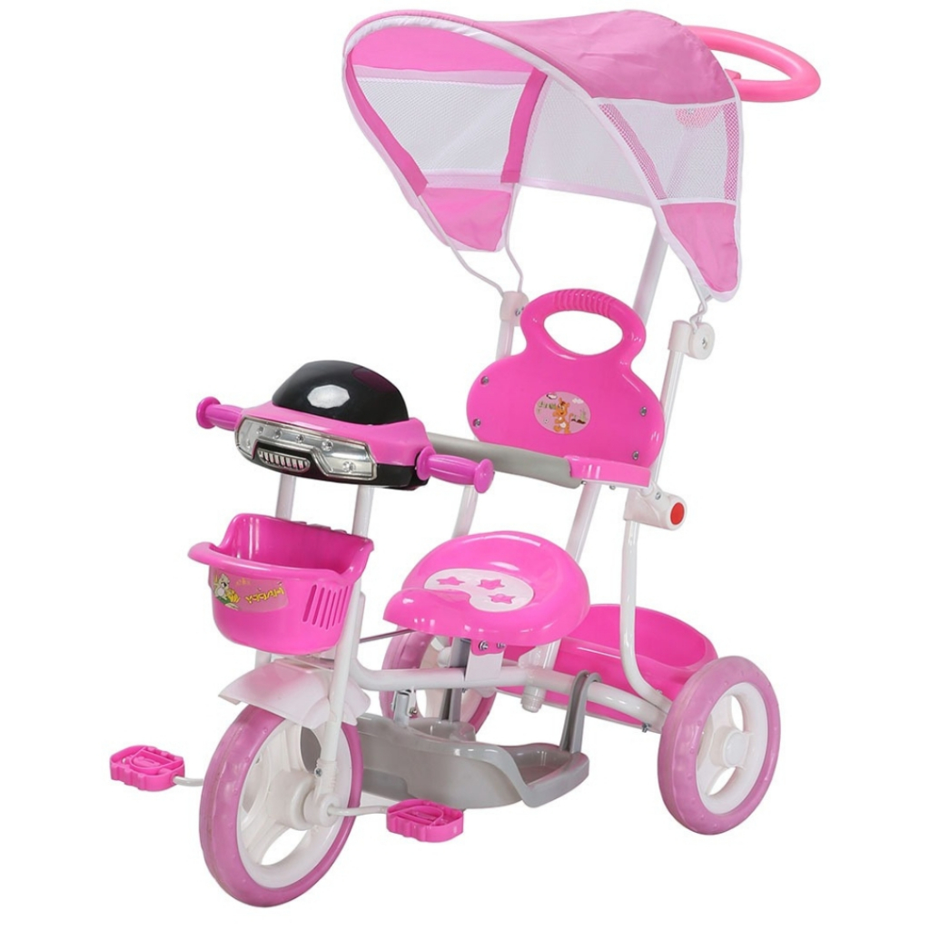 Triciclo Motoca Infantil Passeio Rosa com Empurrador e Cobertura BW003-R IMPORTWAY