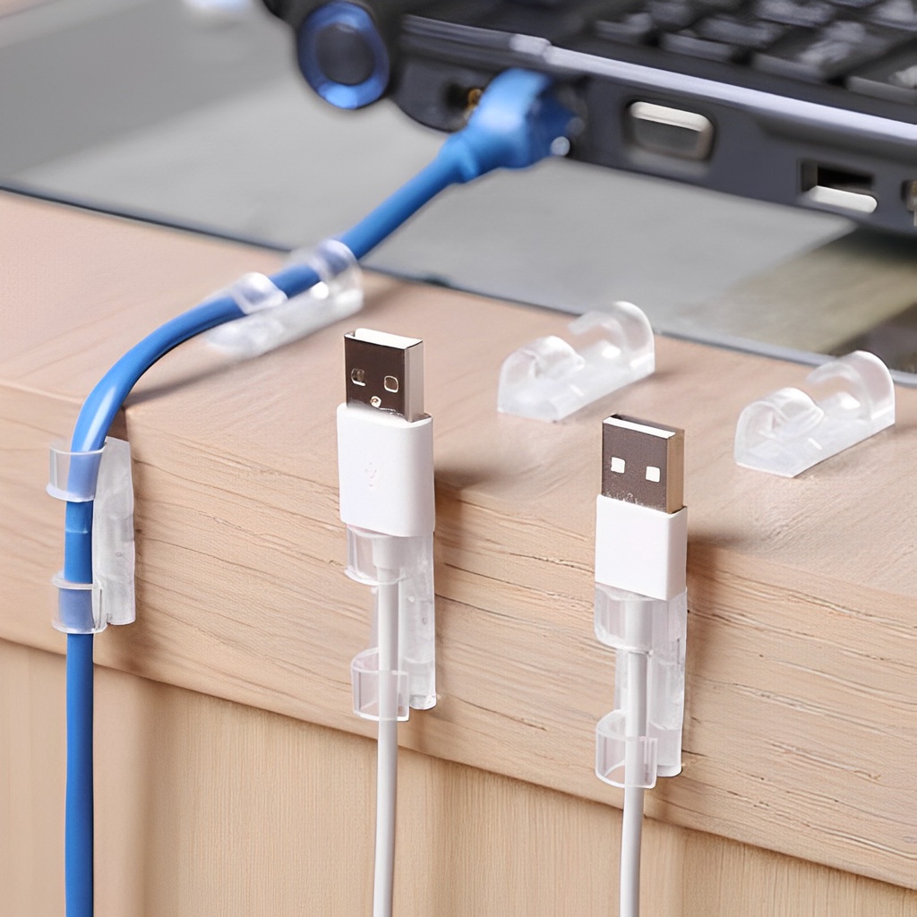 Kit Organizador De Cabos Fios Fixador Adesivo Resistente Clips Parede Mesa Escritório Fio Cabo