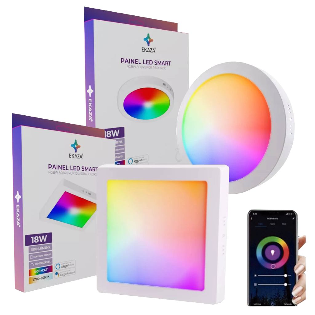 Painel Plafon 18w Led Quadrado Sobrepor Rgb Inteligente