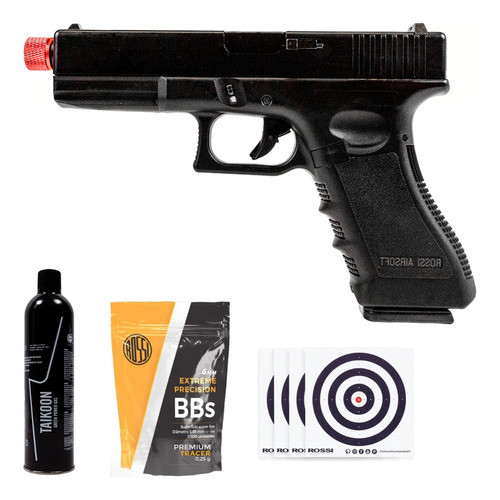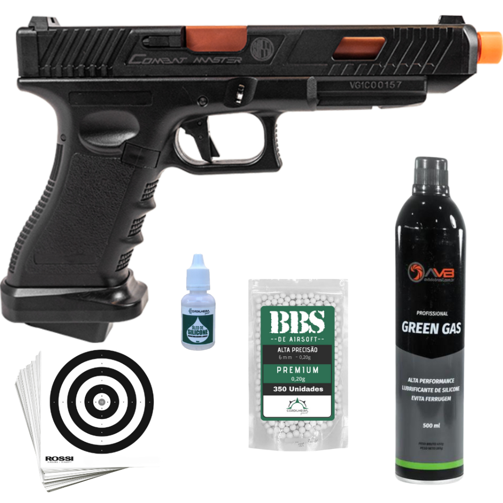 Pistola Combat Master De Airsoft 6mm Blowback Rossi + 350 Bbs + 30 Alvos + 1 Green Gás + 1 Silicone