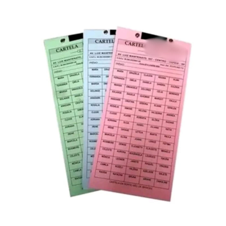 Cartela de Rifa com 100 Nomes PCT com 50 Cartelas