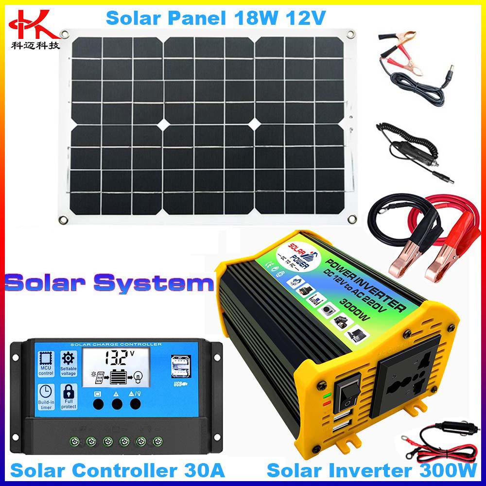 Inversor De Energia Solar 12v 220v 110v 300W Potência De Pico 3000W + Painel 18W + Controlador 30A Para Nosso Transformador De Carga Doméstica De Porta Banco