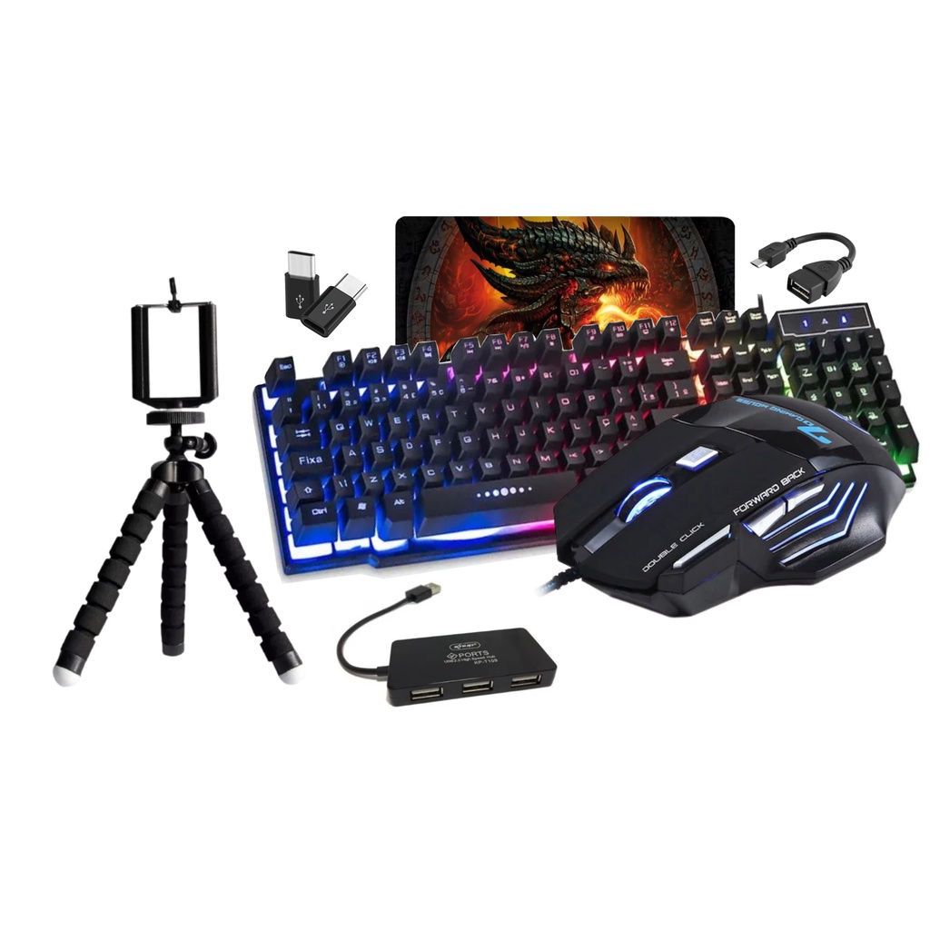 Kit Mobilador Para Celular Gamer Com Tripé Mouse Teclado Led Completo Para Ff/Pubg
