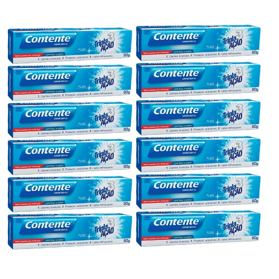 Pasta De Dentes Vegana Contente Tripla Ação 90g Kit C/12 Un