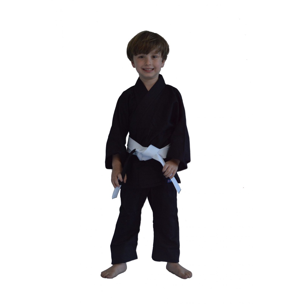 Kimono Jiu Jitsu Combate Preto Torah Infantil com Faixa Branca Simples