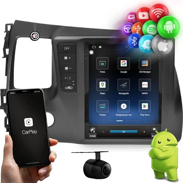 Central Multimidia tesla CIVIC 2007/2011 C/Botão