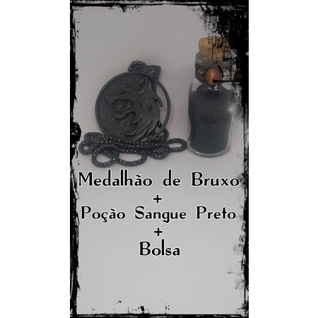 Medalhão de Bruxo The Witcher Geralt + Bolsa Preta + Poção