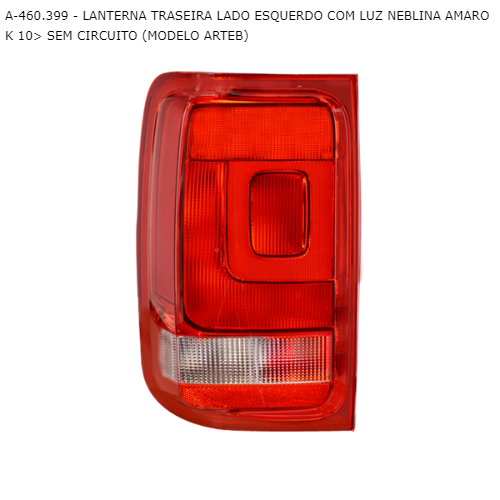 LANTERNA TRASEIRA LADO ESQUERDO COM LUZ NEBLINA AMAROK 10> SEM CIRCUITO (MODELO ARTEB)