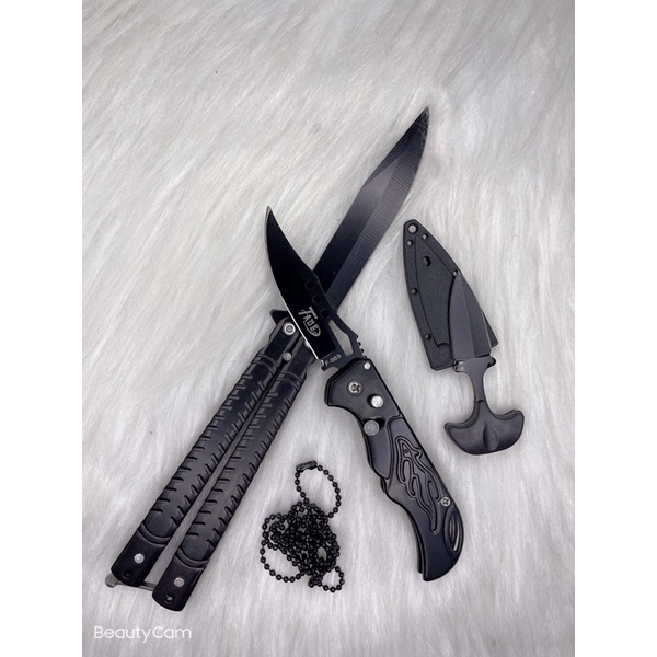 kit canivete butterfly borboleta + mini faca + canivete afiado 16 cm