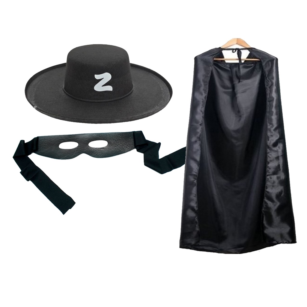 Fantasia Zorro Capa, Chapéu E Máscara Feminino/masculino 3pç