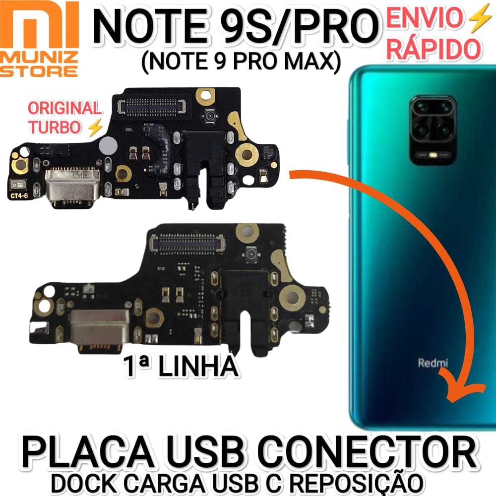 Conector Redmi Note 9S/ 9 Pro/Max Placa USB Tipo C Original/1° Linha Dock Carga Carregamento
