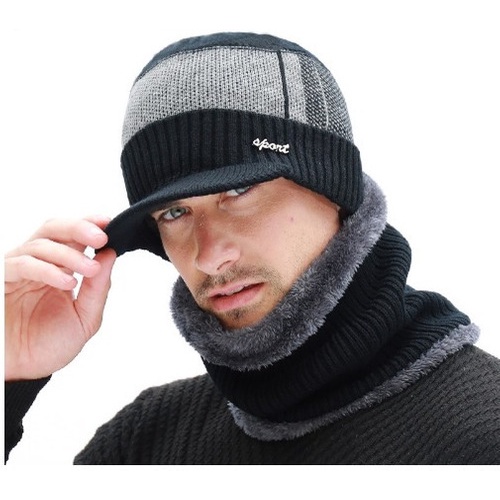 Kit Boné Boina Gorro Cachecol Beanie Forrado Lã Inverno Touca de Frio Masculino Feminino