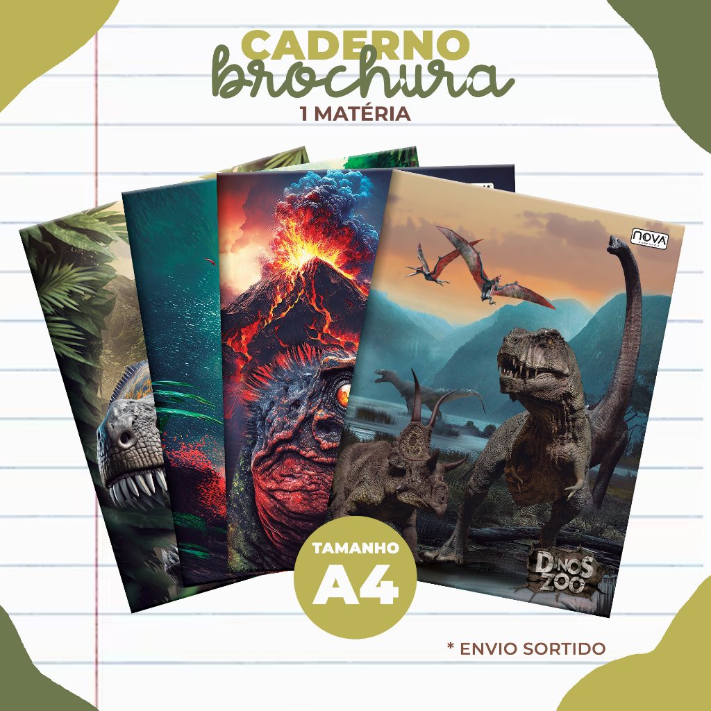 Caderno Escolar Capa Dura Dinossauro ZOO Grande Brochura
