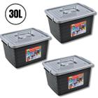 Kit 3 Caixa Organizadora Container Cesto 56 L Com Tampa e Trava Preta Arqplast