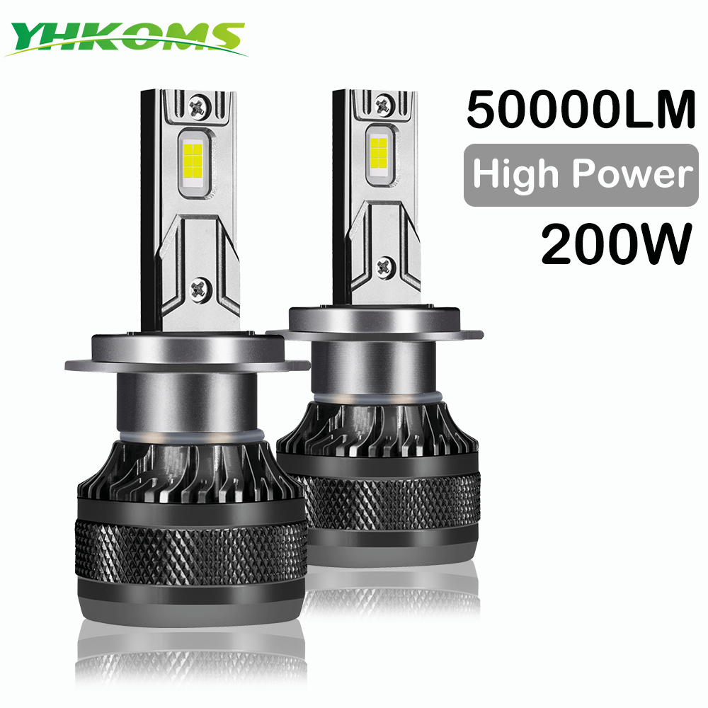 YHKOMS Farol LED De Carro H7 H4 H1 H8 H11 HB3 HB4 9005 9006 9012 6000K 200W 50000LM Lâmpada Automática Turbo Luz De Neblina 12V