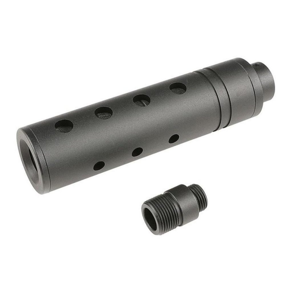 Sore Silenciador Airsoft 140x28 mm Liso Rosca Esquerda GBB WE Pistola Sea Parts (Ref. S140-28-SORE-14X1E )