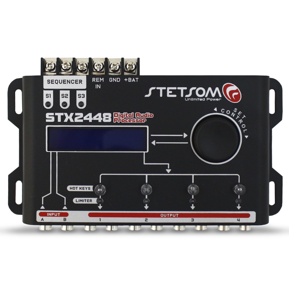 Processador Audio Automotivo Stetsom STX-2448 4 Canais Digital Crossover Equalizador Gain Delay Phase Limiter