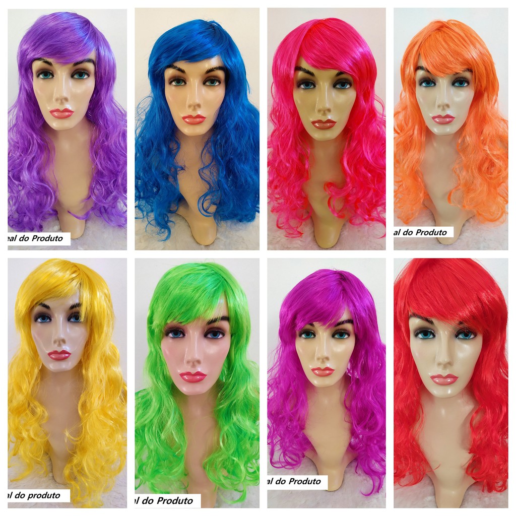 Peruca Longa Colorida Lisa com Franja Para Festas Comemorações Carnval Cosplay Cabelo Sintético Várias Cores