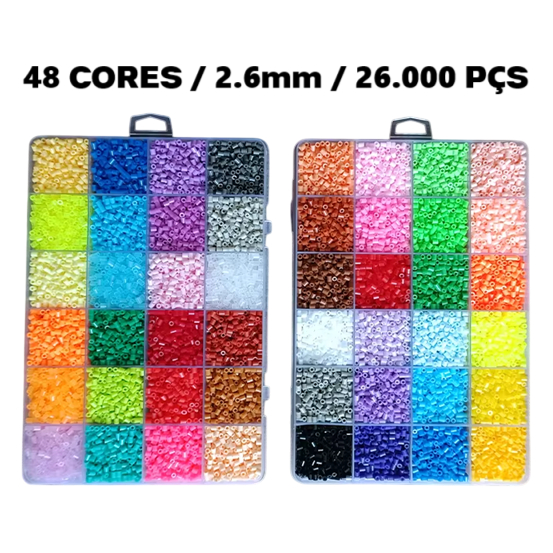 Kit 48 Cores Perler Hama Beads 2,6mm 26.000 pçs Pixel Art c/ Caixa