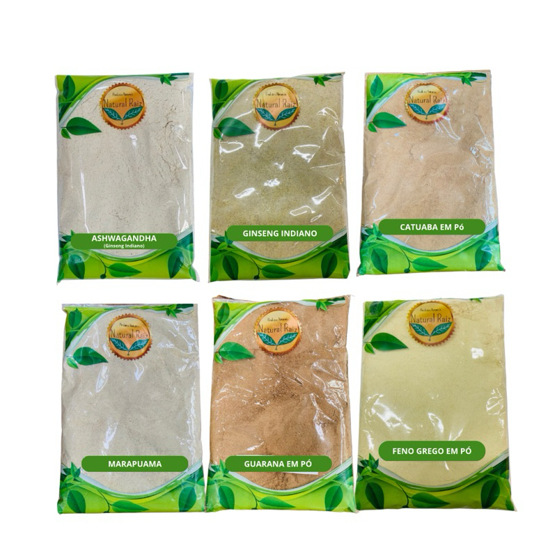 Kit Energia Pré-Treino Ashwagandha + Marapuama + Guaraná + Ginseng + Catuaba + Feno grego 100% Natural